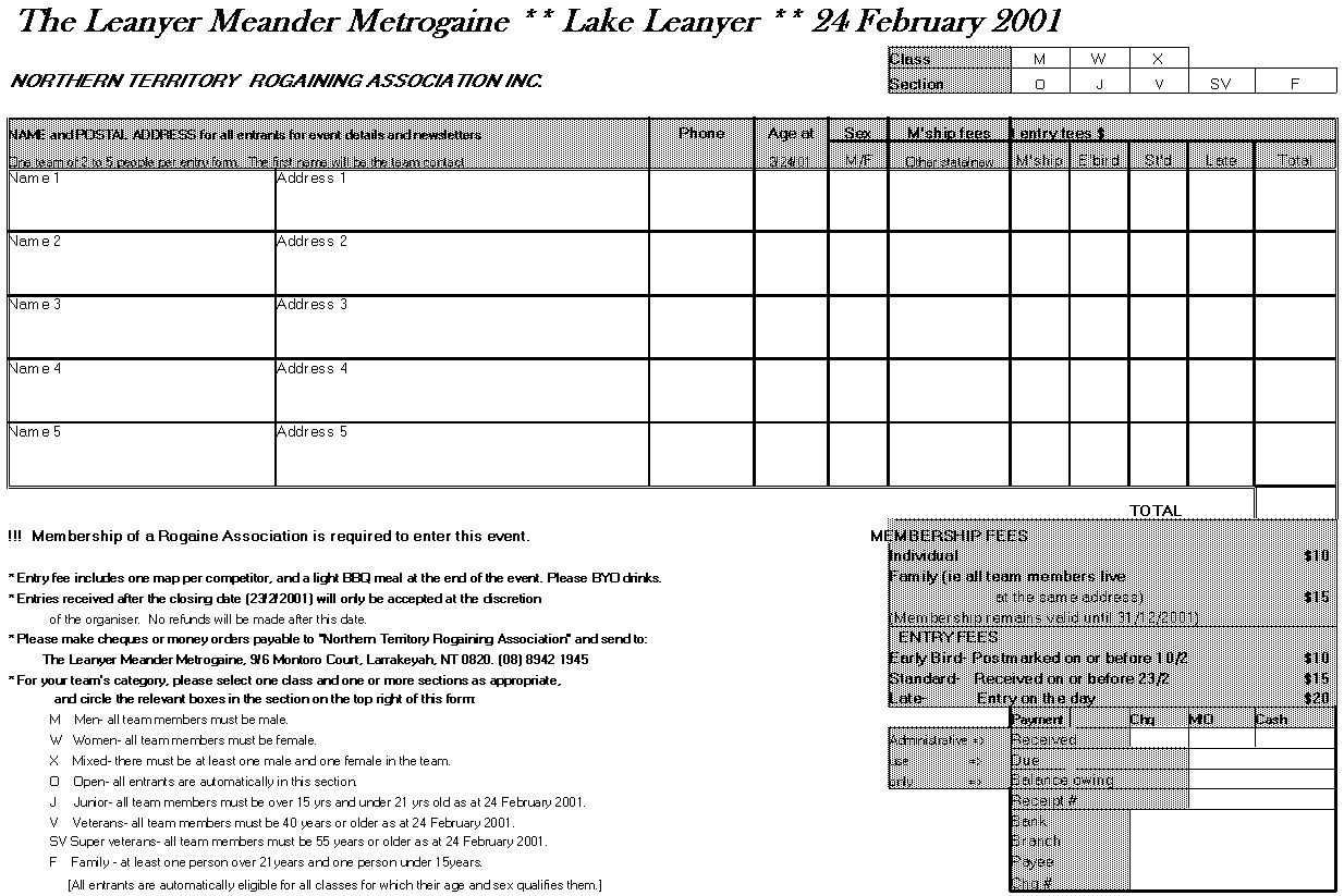 For the entry fee you will receive a pre-printed map of Darwin's northern suburbs, showing the control locations. The organisers have expended substantial effort to ensure that the event is of a high standard. A barbeque, with vegetarian options, will be provided after the event, and is included in the event cost.